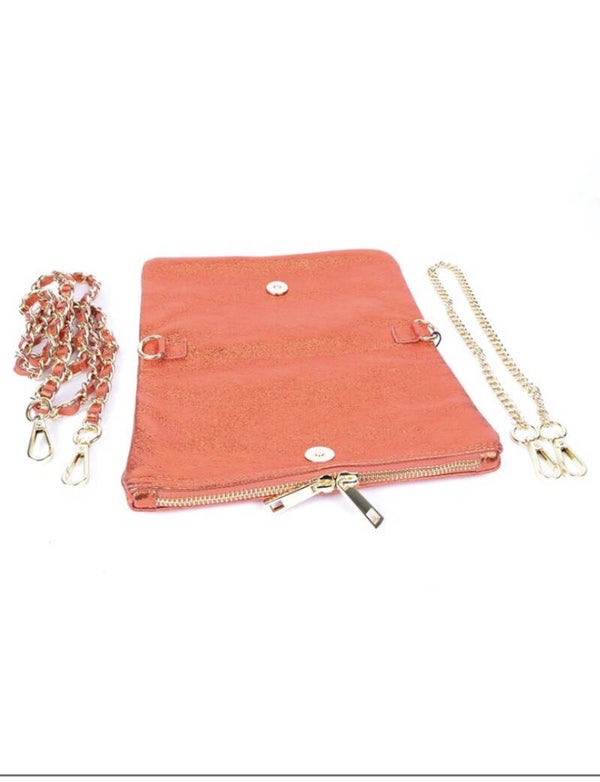 Metallic tas echt leer - oranje