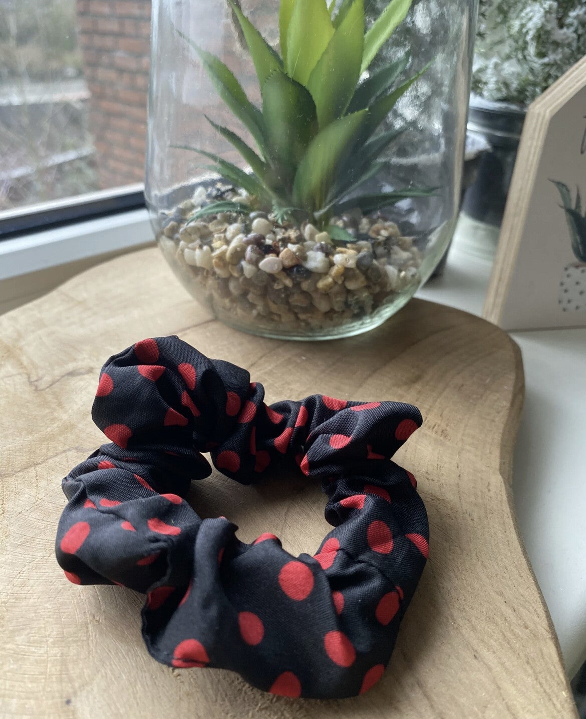 Zwart/rode gestippelde scrunchie